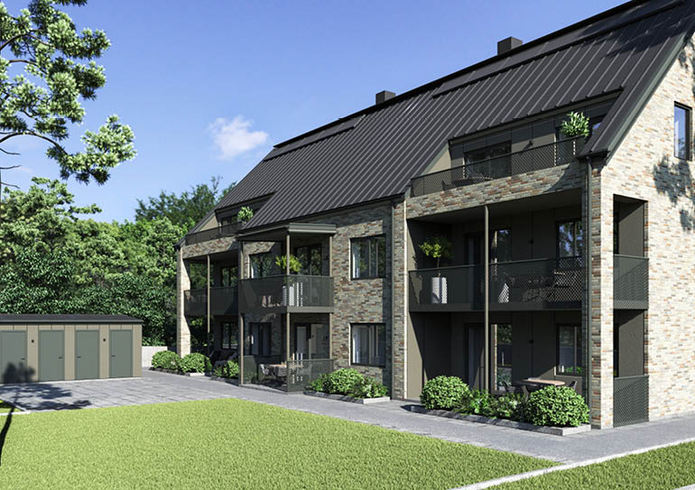 Här kan de nya hyresgästerna flytta in i riktigt fina och välplanerade lägenheter med hög standard och hiss i huset. Samtliga lägenheter är fullutrustade med diskmaskin, mikrovågsugn, tvättmaskin och torktumlare. Till varje lägenhet hör antingen en insynsskyddad uteplats eller balkong på baksidan av huset. Fina grönområden och planteringar omgärdar huset.